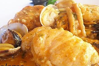 Ingredientes para 6 personas: 1 kg. de mejillones1 kg. de almejas10 rodajas de rape ½ Kg. de calamares1 cebolla2 ajos2 tomates 1 c/p de pimentón dulce y al gusto de pimentón picante 50 cc. de coñacsal, pimienta negraaceite de oliva virgen extraPara la picada:Unos piñones, 4 almendras, 4 avellanas unas hojas de perejiluna rebanadita de pan tostado