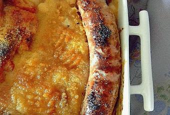 Cuando las salchichas y el confit estén echos, retirarlos de la sartén y ponerlos sobre papel absorbente. Reservar.