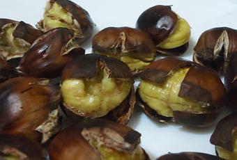 b) Horno. Calentamos el horno a 200ºC (de arriba y abajo) durante unos 10 – 15 minutos, metemos las castañas en la bandeja del horno a media altura y contamos unos 25-30 minutos, cuando transcurra unos 15 minutos giramos las castañas para que se hagan por el otro lado.