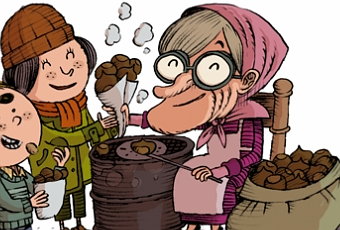 Cuenta la canción popular, que una viejecita que recoge ricas castañas de la montaña, baja a la ciudad para vender castañas que ella misma asa al calor del fuego. Para calentar los días de otoño junto a los amantes de las castañas.