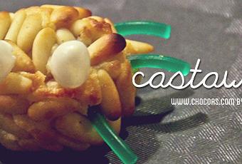 La imagen del inicio de este post describe perfectamente que es el castaween. Un panellet de piñones disfrazado de araña, hay mejor representación de las dos fiestas?! el año pasado me dio por hacer arañas pero pensando un panellet de coco podría ser una momia, y un panellet de chocolate convertido en murciélago?! uhm... interesante. ¿Cómo caracterizaríais vosotros los panellets?