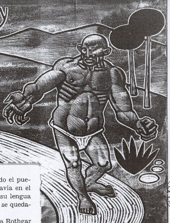 Esta “españolización” del héroe nórdico tenía además otras facetas. Beowulfo es representado en las ilustraciones como un Don Quijote medieval, en un entorno eminentemente manchego (primera imagen). Grendel, por su parte, es un gigante, cuyo aspecto le asemeja más a un “moro”, que a los trolls del norte.