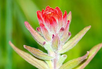 Hojas basales pequeñas o en gomérulos de hojitas anchamente ovadas, de 1 a 2 mm de longitud; hojas caulinares alternas, sésiles, oblanceoladas de 3 a 6 cm de largo por 0,5 a 1 cm de ancho. Hojas superiores bracteiformes, paulatinamente menores que las caulinares, de color rojo o purpúreo.