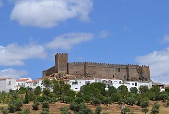 Desde lejos ya se aprecia el imponente castillo de Segura de León al que nos dirigimos. Una vez en el pueblo y tras un paseo por el mismo nos dirigimos al Castillo donde tras una breve introducción por parte de Rocío, de la oficina de turismo, nos disponemos a recorrer algunas de sus estancias como una pequeña capilla o su torre del homenaje a la cual en estos días no se pudía subir hasta las almenas, tan solo es visitable una habitación de la misma. Su patio de armas, que en el siglo XIV debía ser un hervidero de gente, ahora nos acoje para comenzar nuestra visita. Recorremos el camino de ronda desde donde hay unas impresionantes vistas del entorno, por lo cual se debió elegir este lugar para situar este castillo y así dominar todas las tierras circundantes.
