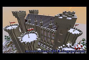 Esta construcción formará parte del casco viejo de la ciudad (aún en construcción). En el hemos hecho interiores, como el salón real: las catacumbas o mazmorras con su zona de brujería (para que podáis encantar vuestras armas), salón secreto y mazmorras. También debajo del castillo hemos habilitado una zona con cocina, huertas, granjas y un manantial para que los habitantes del castillo puedan subsistir.