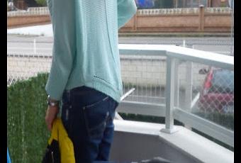 Elegí este jersey calado en verde pastel, uno de los colores de la temporada, tipo murciélago y corte asimétrico; me siento comodísima con él. Como quería ir cómoda me planté mis boyfriend y una de mis prendas fetiches, las chaquetas, tan necesarias con este tiempo y en Cantabria aún más. Esta misma chaqueta ya la vistéis en otro post, pero en color verde flúor. No pude resistirme y me las cogí en los dos colores, super tendencia esta temporada. Y el negro y amarillo, es una de mis combinaciones favoritas, el acolchado de las mangas, el detalle de los cordones en la espalda...me enamoraron!! La otra la podéis ver aquí. Y de calzado uno de mis botines favoritos de FTM SHOES.