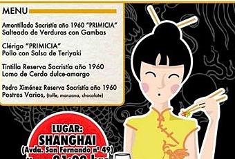 El martes 8 de abril, a las 21 horas, las "Bodegas El Gato" y el "Restaurante Shanghai 1968", ambos de Rota, organizaron una "Cata con Solera", en el comedor del restaurante, consistente en la degustación de vinos de la "Sacristía" de "Bodegas El Gato" y "Tinto Clérigo 2011" maridados con unos platos orientales de cocina cantonesa elaborados por "Shanghai 1968".Cartel de la "I Cata con Solera"