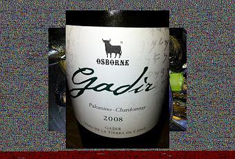 El Gadir del 2008 es un vino blanco de las Tierra de Cádiz elaborado con uvas palomino y chardonnay de las famosas bodegas Osborne. De color pajizo con aromas a hierbas del campo, flores blancas. En boca es ligero con un toque de manzana verde, bien fresquito sobre los 8ºC es muy fácil de beber. Es ideal para arroz caldoso marinero y pastas frescas. Su precio es muy recomendable no llega a 3 euros.