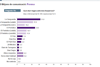 Según el CEO, de la Generalitat, la televisión más vista, las radios más escuchadas, la prensa más leída, a mucha distancia del resto son, TV3, Catalunya Radio y RAC1, y La Vanguardia y El Periódico. Sumen el mundo cultural, universitario, y otros niveles educativos, deportivo, etc. cuyas élites mayoritariamente impulsan el proceso y obtendrán un conjunto de generadores de contenidos ideológicos potentísimo en la dirección nacionalista, hoy transmutada soberanista.