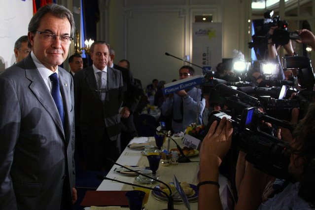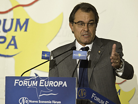 Sólo dos días después de la multitudinaria manifestación de la Diada, la mayor de la historia de Barcelona, que reclamó la independencia de Catalunya, Artur Mas viaja a Madrid, en donde interviene ante la plana mayor del empresariado español. El coloquio del desayuno informativo organizado por Nueva Economía Forum es monotemático sobre la cuestión de la independencia, aunque Mas no llega a pronunciar esta palabra. Insiste en la necesidad del pueblo catalán por decidir su propio futuro. El presidente de la Genealitar se mantiene tajante a favor de la creación de un nuevo Estado dentro de Europa. Asegura que su convicción independentista nace del fracaso de su perseverancia de las últimas décadas, en su intento por hacer encajar la identidad catalana dentro del Estado. “Durante décadas –dice– el proyecto ha sido intentar transformar el Estado para que el Estado fuera nuestro. Un Estado amable en el que Catalunya pudiera encajar. Pero, manifestaciones como las de la Diada demuestran que eso no ha sucedido. No habremos tenido la fuerza suficiente”, se lamenta. Por lo tanto, si no es posible adecuar las expectativas de los catalanes dentro de España “lo que tiene que entenderse es que Catalunya necesita un Estado. Y, después de años en los que Catalunya ha aportado a las arcas públicas españolas más de lo que ha recibido de las mismas, al final la gente dice basta”.