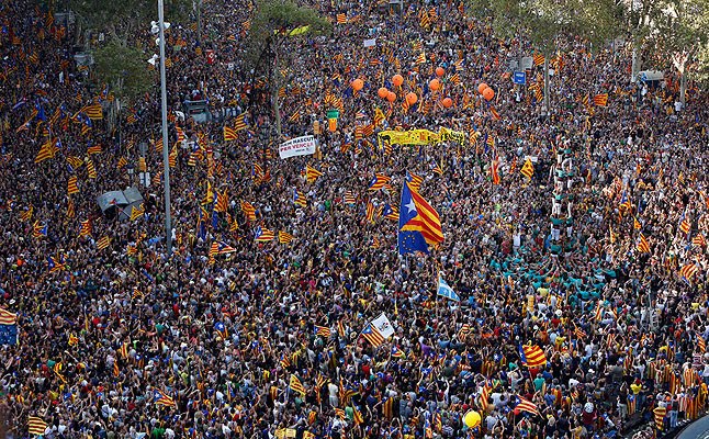 El Parlamento catalán declaró el 11 de septiembre día de la Fiesta Nacional catalana (Diada de l'Onze de Setembre, Diada Nacional de Catalunya) que cuenta como símbolos nacionales con la bandera (cuatro barras rojas horizontales sobre fondo amarillo), la fiesta de la Diada y el himno Els segadors. Pero, tras esta magna manifestación en la que se exhibió la bandera independentista catalana, muchos, con un pie fuera de España, se sienten más legitimados que nunca para poner en marcha sus proyectos secesionistas. “El próximo 27 de septiembre –declara el diputado auntonómico Uriel Bertran, el secretario general de Solidaritat Catalana per la Independencia (SI)– someteremos a votación una declaración de independencia en el debate de política general que se realizará en el Parlament y pediremos coherencia a los partidos políticos que han participado este martes en la manifestación y a sus 86 diputados (CiU, ICV, ERC y SI) para que voten a favor de la declaración de independencia, lo que supone una amplísima mayoría del Parlament”. Oriol Junqueras, presidente de Ezquerra Republicana (ERC) arengaba ese día a sus tropas: “Si tuviésemos 68 diputados en el Parlament (es decir, justo la mayoría absoluta), estaríamos proclamando la independencia ahora mismo”. Oriol Pujol, Secretario general de Convergencia Democrática da catalunya (CDD), decía ese mismo día: “Esperamos que la Diada pase a la historia como el punto de inflexión en el que Cataluña emprende un nuevo camino hacia la libertad”. Y, la noche anterior, en el tradicional homenaje que se hace a los caídos en el cerco de Barcelona de 1714, había sido todavía más contundente. “Anhelar la libertad de Cataluña ha pasado de ser un imposible a ser un inevitable”, dijo ante un enfervorizado público independentista. Sabemos que vivimos un momento histórico: estamos en una transición nacional, reclamamos la soberanía fiscal y aspiramos a un Estado propio (...) ¿Somos radicales por querer vivir de nuestro esfuerzo? ¿Somos radicales por aspirar a la soberanía económica? ¿Somos radicales por saber que sólo podemos garantizar el país con un Estado propio? Lo que es radical es el proceso de recentralización. O que el PSOE tilde la propuesta de pacto fiscal de arcaica. O que se diga que Extremadura paga y Cataluña cobra. O la persecución del catalán que se hace en las Illes (Baleares) o en La Franja (la franja de Aragón que limita con Cataluña)”. Sin embargo, aún está por ver que CiU apoye una deriva parlamentaria secesionista que puede derivar en un conflicto político e institucional sin precedentes y que no tiene un final claro.