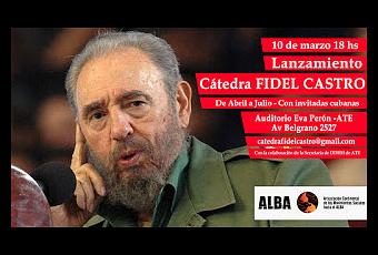 Cumpliendo con una resolución surgida de la última asamblea continental de los Movimientos hacia el ALBA, de instituir a nivel de todos los países que participan dentro de esa articulación la Cátedra Fidel Castro, el próximo viernes 10 de marzo será presentada dicha iniciativa en el Anfiteatro Eva Perón de ATE, (Av. Belgrano 2527, Ciudad de Buenos Aires) a las 18 horas.La cátedra se realizará en su primer etapa durante un cuatrimestre, entre abril y julio, y en el lanzamiento participarán dos luchadoras cubanas, Marilin Peña, del Centro de Educación Popular Martin Luther King y Yohanka Leon del Rio del Grupo América Latina: Filosofía Social y Axiología (GALFISA). Al comienzo del encuentro se proyectará un video sobre Fidel Castro y su práctica rebelde y consecuente.