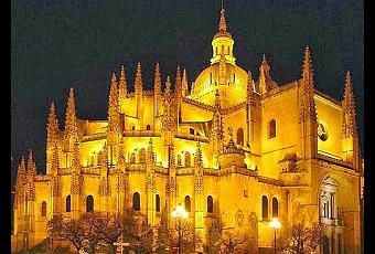 La Catedral de Segovia, es conocida también como la Dama de las Catedrales "por sus dimensiones y su elegancia". Comenzó su construcción en 1525, siendo una de las muestras del gótico más tardías de España y Europa, cuando ya se difundía la arquitectura renacentista. Como curiosidades, que es lo que aquí procuramos destacar, diremos que el chapitel de piedra que corona la torre, se erigió en 1614, destruído el original por un incendio. El retablo que ocupa el altar mayor es un conjunto mármoles de diversos colores y de bronces que recrean una estructura neoclásica. Los 65 vitrales de esta catedral están considerados como uno de los conjuntos más importantes del patrimonio vidriero español. En este apartado cabe reseñar que siete de estos vitrales fueron colocados en 1916 y que desde el año 2010 todo el conjunto está en proceso de restauración a cargo del vidriero segoviano Carlos Muñoz de Pablos.