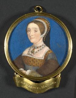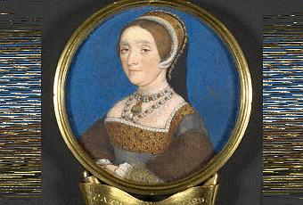 Retrato en miniatura hecho por Hans Holbein, probablemente Catherine Howard. Alrededor de 1541, siendo ya reina de Enrique VIII.