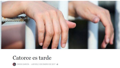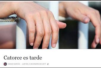 La publicación de Diego García, titulada "Catorce es tarde" hace referencia a las diferentes situaciones que los menores tienen que afrontar en su adolescencia y que no se consideran como causantes de la delincuencia juvenil.