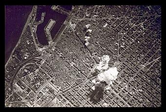 Lo cierto es que las maniobras militares habidas antes sobre el cielo de Barcelona jamás habían tenido la dimensión de las de hoy en cuanto a duración, número de participantes y maniobras ensayadas. Obviamente no han estado paseándose y quemando combustible porque sí, sino practicando ejercicios de bombardeo sobre una población civil indefensa.En la imagen que ilustra el post, bombardeo sobre Barcelona en marzo de 1938, llevada a cabo por la aviación fascista italiana al servicio del Ejército español comandado por el general Franco.