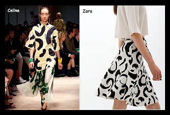 Se trata de un estampado con fondo blanco y efecto brochazos en negro que hemos visto en la colección de Celine primavera verano 2014 y que podréis encontrar muy similar en ZARA en forma de falda.