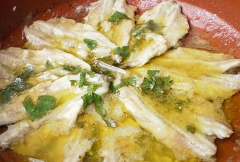 Hoy, una deliciosa cazuela de boquerones, con ajitos y limón.