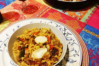 Esta cazuela de fideos con verduras y queso de cabra está hecha con fideos gruesos del tipo que usamos para la fideuá. Estos fideos los recuerdo en las sopas que preparaba mi abuela y que a mi no me gustaban casi nada. En casa de mi madre los fideos eran los llamados cabellín, los más finitos que había en el mercado. Creo que no me gustaban los fideos gruesos porque al cocerlos demasiado se quedaban muy pastosos. Ahora, muchos años más tarde, me he reconciliado con estos fideos que dejándolos en su punto son una maravilla.Seguir leyendo...