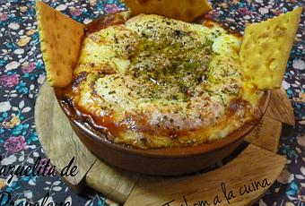 Ideal como un pica-pica en una cena informal, con amigos, una cena de noche de fútbol, etc... Solo se trata de ir metiendo la tostadita de pan, removerla un poco para mezclar el queso con el tomate y estirar.