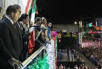 · A una voz, más de 15 mil personas acompañaron a la presidenta Sandra Luz Falcón para el tradicional grito de independencia en Texcoco.· Los texcocanos disfrutaron de una verbena popular con música, baile y el orgullo de ser mexicanos.Texcoco, Edomex.- “¡Vivan los Héroes que nos Dieron Patria y Libertad!”, “¡Viva Texcoco!”, “¡Viva México!”, fue el grito de la Presidenta Municipal de Texcoco Sandra Luz Falcón Venegas, durante la ceremonia CCIX aniversario de la independencia de México ante más de 15 mil asistentes que corearon a una sola voz, “¡Viva México!” sobre la avenida Nezahualcóyotl, frente al Palacio Municipal. La Presidenta Municipal acompañada por la Delegada de Programas Federales en el Estado de México Delfina Gómez Álvarez, la Diputada Federal Karla Almazán Burgos, el Diputado Federal Alejandro Viedma, el subsecretario del Trabajo Horacio Duarte Olivares, el Delegado Regional de Programas Federales Francisco Vázquez Rodríguez, el Delegado Regional de Instituto Mexicano del Seguro Social Jesús Adán Gordo Ramírez, la Reyna de las Fiestas Patrias “ Daniela 1ª”, el cuerpo de gobierno integrado por Síndico y Regidores, quienes rememoraron el grito por la libertad y la independencia de México. En un ambiente de paz y armonía, se desarrolló la ceremonia, con un cielo despejado que dejó ver la luna y las estrellas, cobijando a millones de mexicanos que salieron a la calle a participar de la fiesta mexicana. El Secretario del Ayuntamiento Juan Darío Arreola Calderón, fue el encargado de leer ante más de 15 mil ciudadanos de Texcoco el acta de independencia, para dar paso al acto protocolario del “Grito”. Frente al Palacio Municipal, los vecinos de Texcoco disfrutaron del programa para las fiestas patrias, en donde estuvieron desde las 16:00 horas la Banda Sinfónica de las Escuelas de Enseñanza Musical y la soprano Ruth González. Se presentó el grupo Six Tyle-Hip-Hop, la compañía de danza Convergencia, la cantante Diss Vega, la Sonora Dinamita y para el cierre, El Komander. Por primera vez, luego de la ceremonia del grito, se presentó el espectáculo Piro Musical, con las luces y melodías tradicionales de esta fiesta patria. Y al ritmo del Huapango de Moncayo, los fuegos pirotécnicos dejaron ver su belleza estremeciendo las fibras de los corazones de los asistentes en este día en donde se muestra el orgullo de ser mexicano.