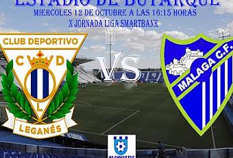 Este miércoles 12 de octubre a las 16:15 horas el Málaga CF visita el estadio de Butarque para enfrentarse al CD Leganés en partido correspondiente a la décima jornada de la Liga SmartBank.