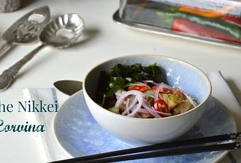 Aunque el cebiche se come con cuchara, con el término nikkei se denominaba a los emigrantes japoneses que fueron a Perú, y es por lo que he querido añadir, además de la cuchara, un par de palillos como cubierto.