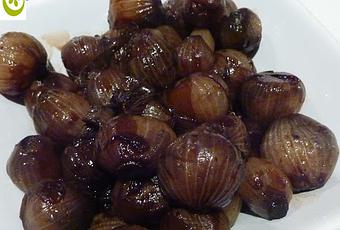 Ponemos las cebollitas en remojo en agua fría para facilitar el pelado. Les quitamos la piel, las ponemos en una olla con el agua y las dejamos hervir 12 minutos, luego le ponemos el vinagre, el azúcar y la sal y dejamos hervir a fuego lento durante una hora y cuarto. Listo.