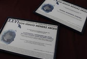 Boletín de prensaEl Centro de Derechos Humanos “Zeferino Ladrillero” celebró la entrega del Premio Nacional de Derechos Humanos “Sergio Méndez Arceo, en su edición 2018, a seis habitantes de la comunidad mexiquense de San Pedro Tlanixco, defensores del agua y la tierra, quienes se encuentran injustamente en prisión acusados del homicidio de un empresario de origen español que disputaba los afluentes del río Texcaltengo.En esta ocasión, este galardón recaerá en las manos de Teófilo Pérez González, Pedro Sánchez Berriozábal y Rómulo Arias Mireles, Marco Antonio Pérez González, Lorenzo Sánchez Berriozábal y Dominga González Martínez, quienes cumplen condenas de hasta 50 años de prisión injustamente.