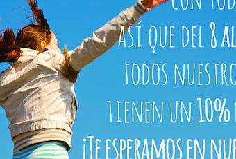 Así que si os pasáis por nuestra tienda desde hoy hasta el próximo domingo a las 23.59 h. encontraréis un 10% de descuento en todos nuestros productos.