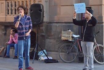 Con integrantes de asociaciones civiles como Poesía en Movimiento, Libros vagabundos, se hizó la callejoneada literaria en la Explanada del Teatro de la Paz, donde se hicieron algunas lecturas de poetas y filósofos, así como un mural urbano donde las personas se podían acercar y plasmar sus pensamiento en las cartulinas.