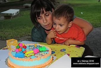 De hecho, tan encantado estaba con su fiesta, que cuando le sacamos la tarta, le cantamos cumpleaños feliz y le hicimos soplar la velita, nos lo hizo repetir tres o cuatro veces...vamos, que mi niño no tiene muchos problemas ni de timidez ni de autoestima!!! jajaja