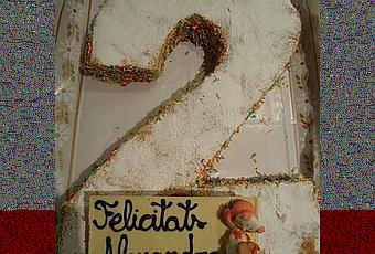 Como toda fiesta de cumpleaños que se precie, hubo pastel. Además, uno muy, pero que muy original con forma de 2. Os dejo aquí una foto para que lo veáis.
