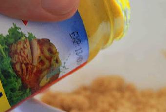 Para iniciar con la preparación de nuestro jamón ahumado, mezclamos unas cuantas cuacharadas de mostaza con piña en un bowl con azúcar morena.