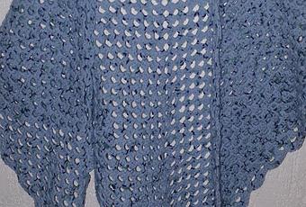 Hoy os traigo un nuevo chal o pashmina tejido a croché, en una bonita lana celeste con unas motitas azules y verdes.