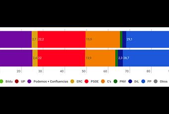 - PP y Ciudadanos subirían 0,8 y 0,3 puntos respectivamente.