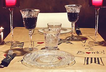 - Comer cara a cara, apartar el resto de sillas del salón (las podéis dejar en otra habitación), sólo dejar dos, una frente a la otra del centro de la mesa, dejando toda la mesa para vosotros dos.