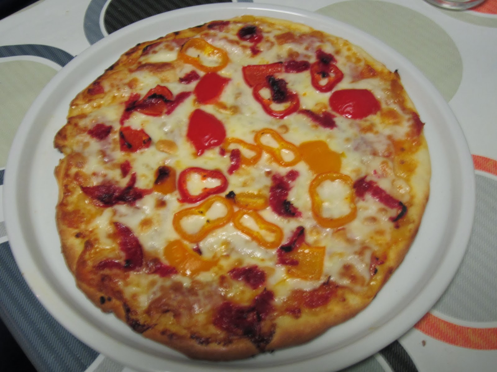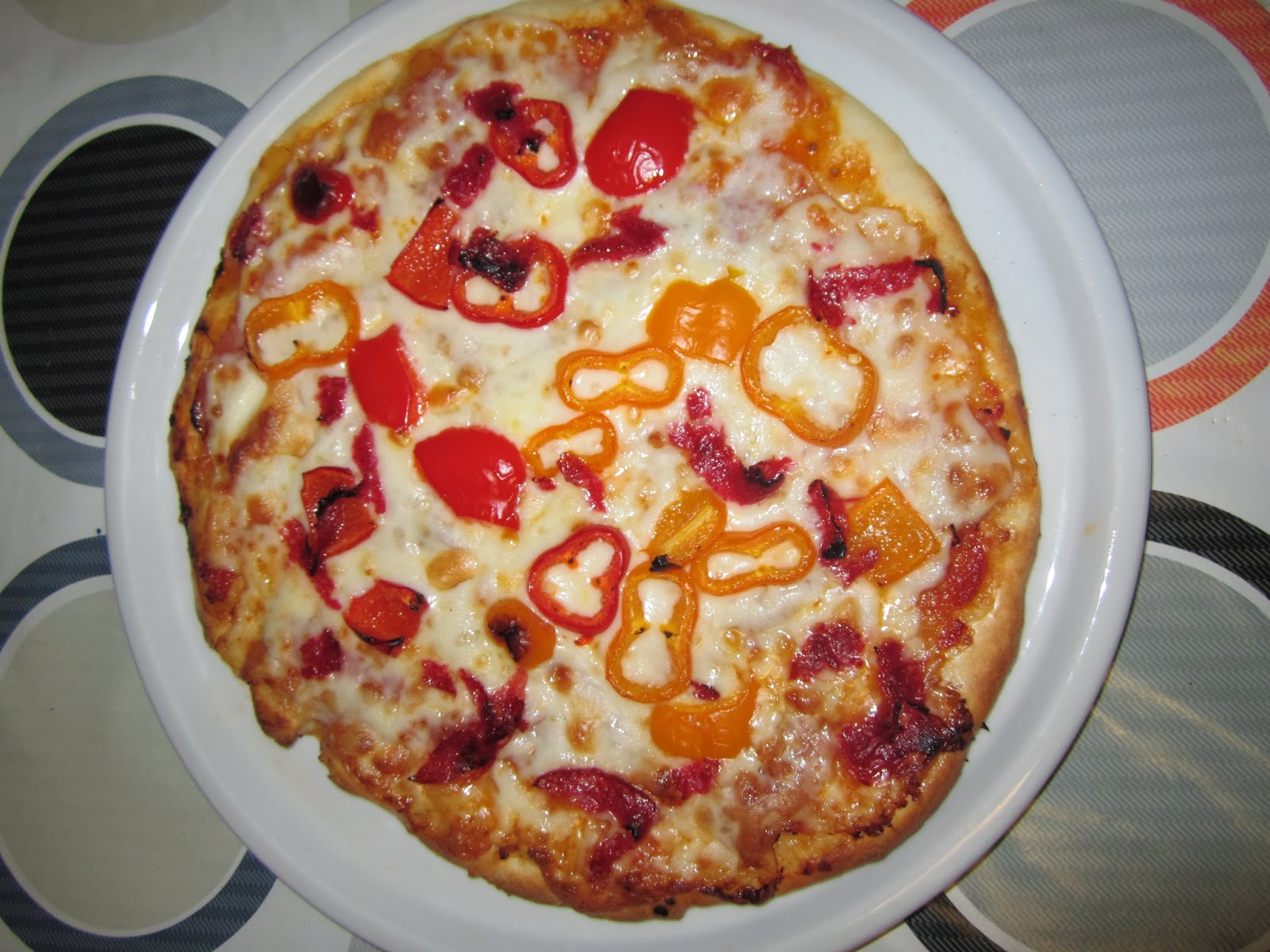 La pizza lleva mezcla de quesos, peperonni y pimientos de colores Tribelli.