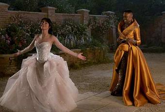 ¿Y qué hay del aspecto musical? Este es un jukebox musical, dícese de los musicales cuya banda sonora está formada por la discografía de un artista o grupo concreto (Mamma Mia!, Across the Universe) o bien, por una selección de canciones de un género o época concreta (Rock of Ages, Moulin Rouge). En este caso, se trata de canciones pop de las últimas décadas con una producción/mezcla bastante imperfecta que ni siquiera dicen demasiado sobre los personajes ni la trama. Sobre todo, se nota una increíble falta de creatividad a la hora de elegir las canciones. Ah, ¿el príncipe se siente solo? Podría decirse que está buscando… Somebody to Love. Ah, ¿la pareja se está enamorando en el baile? Podría decirse que el momento es Perfect. Brillante. Un par de ellas son originales y fueron escritas en colaboración con sus intérpretes, Camila Cabello e Idina Menzel, respectivamente, y bueno… son tan genéricas como el resto. También hay tres ocasiones en las que un pregonero (Ben Bailey Smith) anuncia las noticias del reino mediante raps, y son los únicos momentos musicales de los que genuinamente disfruté.