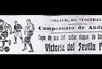 El 21 de marzo de 1915, en San Fernando (Cádiz), el Sevilla Football Club se proclamó campeón en la final de la copa del Duque de Santo Mauro al derrotar al Español F.C. de Cádiz por dos tantos a uno. Conmemorando su centenario les traemos algunos de sus pormenores como merecido tributo a todos aquellos deportistas que mantuvieron viva la llama del balompié andaluz en general, y a la directiva, jugadores y aficionados del Sevilla F.C., campeones del torneo, en particular.