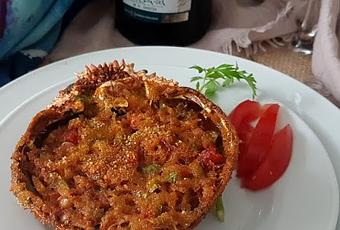 - Rellenamos el caparazón con la preparación de la sartén, espolvoreamos con el pan rallado que hemos mezclado con el perejil picadito. Colocamos una bolitas de mantequilla en la superficie y gratinamos en el horno.