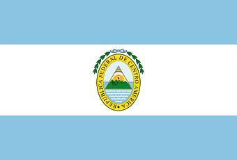 Bandera de la República Federal de Centroamérica, de la que derivan las banderas de Guatemala, Honduras, El Salvador y Nicaragua. Además, los estandartes de Nicaragua y El Salvador conservan los cinco volcanes y el de Honduras tiene cinco estrellas, representando los cinco estados de la antigua federación y reivindicando una eventual reunificación. Fuente: Wikipedia