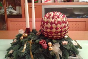 Nunca me hubiera imaginado que a través del patchwork se pudieran tantas cosas distintas. Pero la abuela del peque cada día nos demuestra que el patchwork con imaginación no tiene límites. Hoy os muestro el centro de mesa que he puesto este año en el comedor. Se trata de una bola navideña hecha en patchwork. La bola la ha hecho la abuela y la llevé a una floristería para que me la complementaran para ponerla como centro navideño. Y aquí está el resultado: