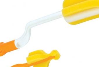 El cepillo limpia tetinas tiene un diseño similar, mango movible y cabezal fabricado con espumas de diferente textura, y con un diseño que encaja perfectamente dentro de la tetina, bastan unos giros de muñeca para garantizar una limpieza total, mucho más eficaz que la que puede ofrecer un cepillo de nylon. Los materiales utilizados para la fabricación de estos complementos de limpieza, no contienen productos químicos que puedan afectar a la salud del bebé, como por ejemplo el bisfenol A.