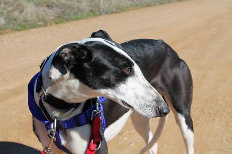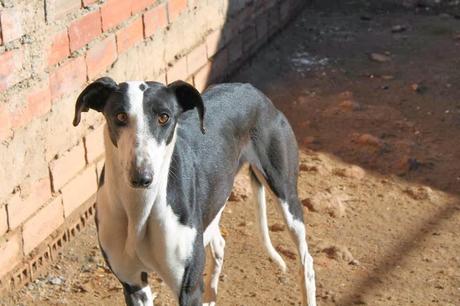 Esta guapa galguita es CEPSA, y la llamo invisible, porque eso es lo que parecía, no hacía más que cruzar una carretera general de un lado a otro pero nadie iba a rescatarla.