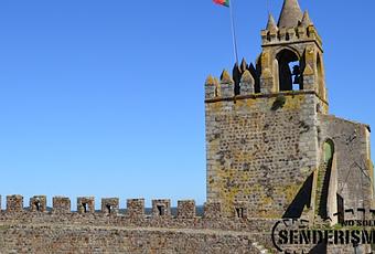 La “cerca urbana” tiene una forma aproximadamente triangular, de forma irregular, rematada por almenas piramidales o rectangulares y barbacana del siglo XIV. Los paños de muralla mejor conservados son los que miran al norte que se encuentran protegidos por doce torreones semicirculares. En el tramo suroeste la muralla se encuentra interrumpida, habiendo desaparecido totalmente la "Puerta de Évora".