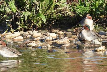 Anas crecca. ♂ Común. Xarxet. Green-winged Teal,Parc Fluvial tramo de Sant Adrià de Besòs