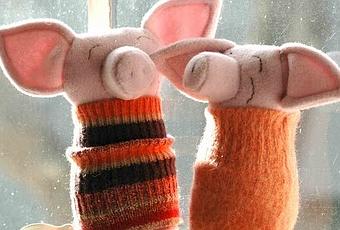 Espero que estos cerditos tan abrigados os arranquen una sonrisa como me pasó a mi cuando los encontré. ¡ Son geniales! Los muñecos están hechos de lana, con detalles bordados, y los jerseys están tejidos con diferentes puntos y colores. Me encanta la expresión de las caritas... parecen tan simpáticos estos cerditos!!!!