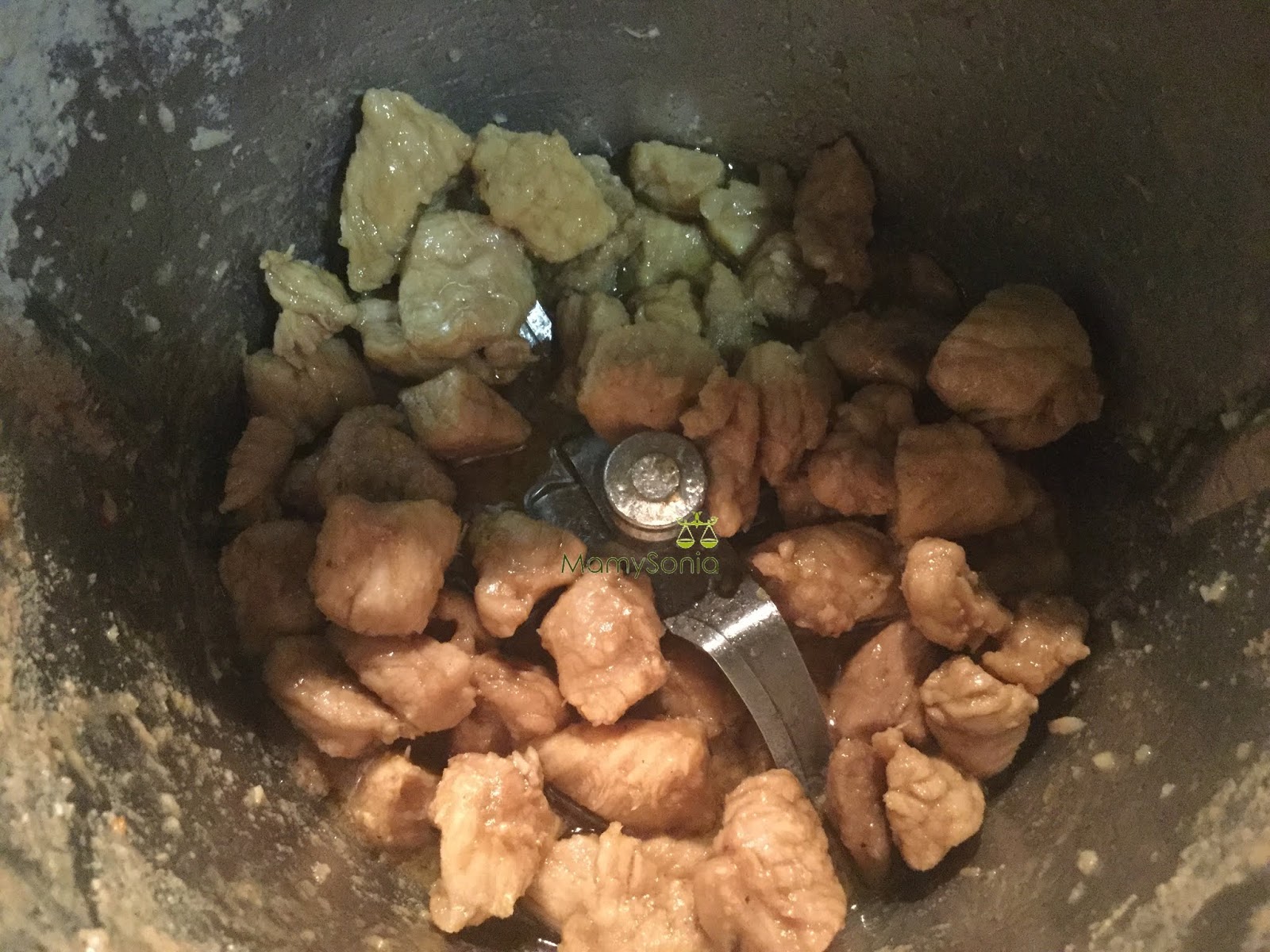 Para evitar que el lomo se desmenuce, ponemos la mariposa en la cuchillas de nuestra Thermomix. Vertemos todo en el vaso y programamos 25 Min, 100º, Giro, Izda, Vel Cuchara.
