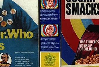 Hace muchos años,en los primeros de las andanzas televisivas del Doctor,salieron toda clase de productos de merchandise sobre la serie de Doctor Who.Con motivo de su 50 aniversario,están saliendo algunas curiosas,como esta imagen de una caja de Kellogg's,con los que te regalaban chapas de personajes de la serie.Y claro,algunos talentosos han creado sus propias cajas de cereales de Doctor Who,como recuerdo y en honor a esas curiosidades.Algunas con muy divertidas: